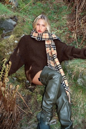 버버리 아카이브를 바탕으로 한 이번 컬렉션의 패브릭, 구조 그리고 디테일은 스코틀랜드 로카론과 아일랜드 도니골 지역에 위치한 직물 공장의 전통 기술과 장인 정신에서 영감을 받았습니다. 또한 이번 컬렉션에서는 버버리 체크 울과 광택 있는 크러시드 벨벳 소재의 드레스가 소개됩니다.